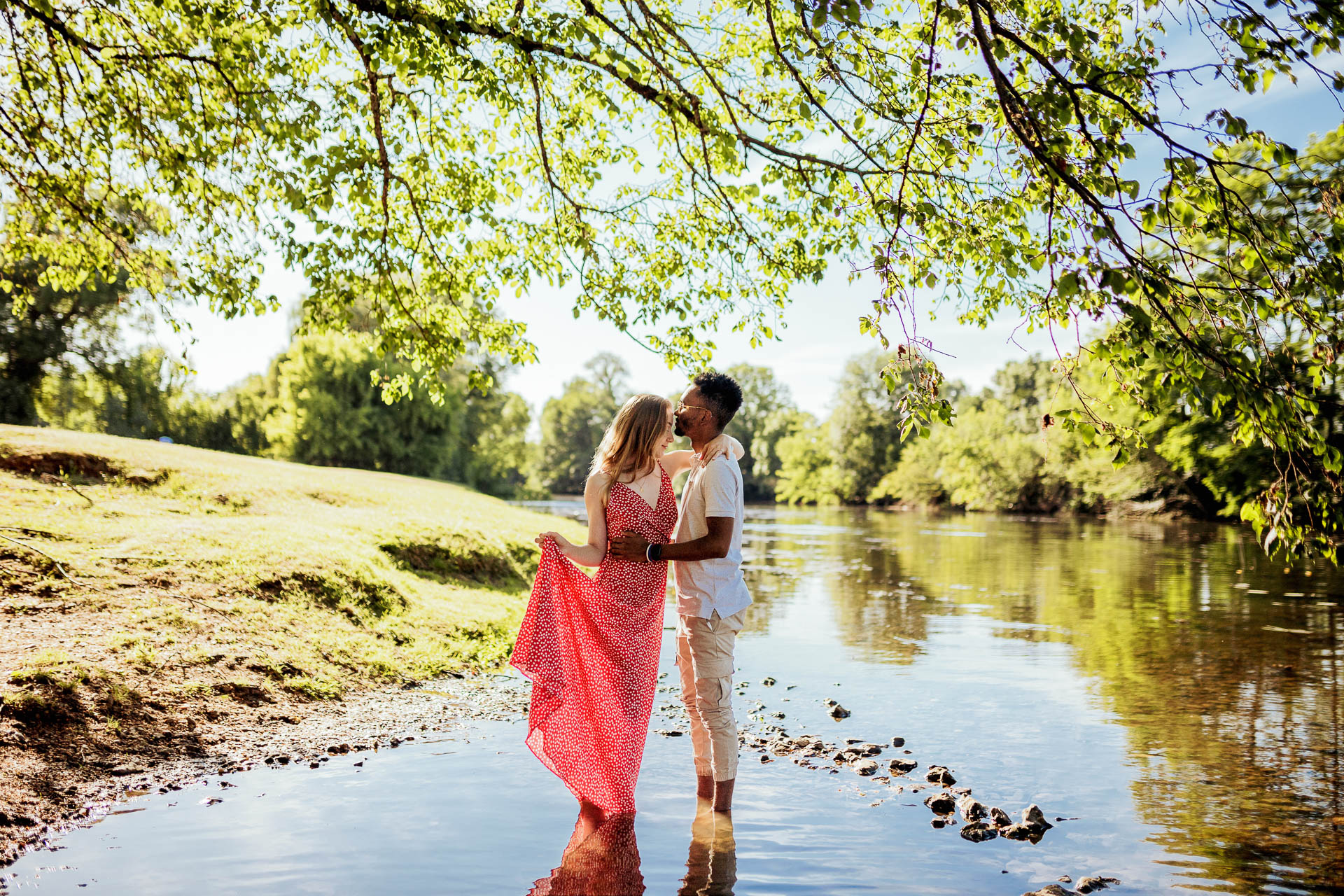 Le soleil est haut et les cigales chantent. Je suis sur le lieu dont le couple m'a parlé en bord de rivière. En attendant qu'ils arrivent je fais le tour rapidement du lieu : quelques arbres, une rivière tranquille, quasiment pas de fréquentation. Je pense que la séance s'annonce O-U-F.